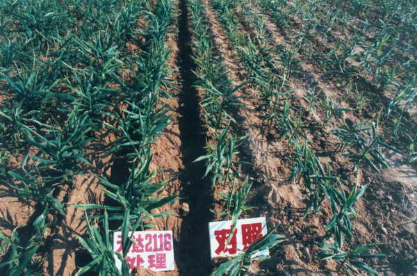 高密市夏庄镇高家店高青 田内,大蒜试验对比情况, 处理比对照增产21.1%。 1999年5月19号