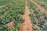 莱阳驻高密市夏庄蔬菜基地内 张所军大头菜试验对比情况, 左为对照,右为处理。 1999年5月22日