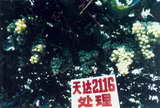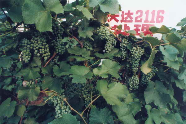 平度市大泽山葡萄基地内 使用“天达-2116”处理 的葡萄长势情况。 1999年8月7日